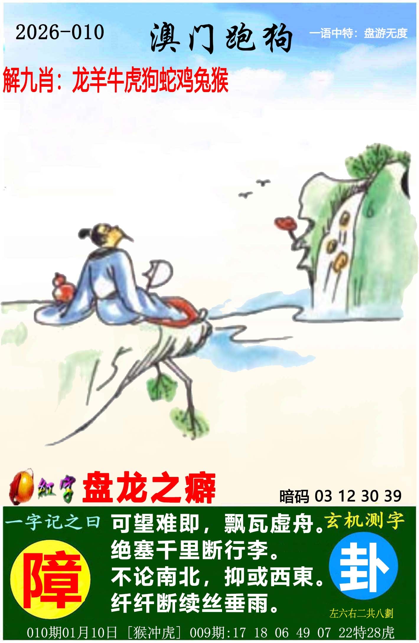 010期跑狗:【障】可望难即,飘瓦虚舟,绝塞干里断行李。不论南北,抑或西東。纤纤断续丝垂雨。玄機測字:《卦》